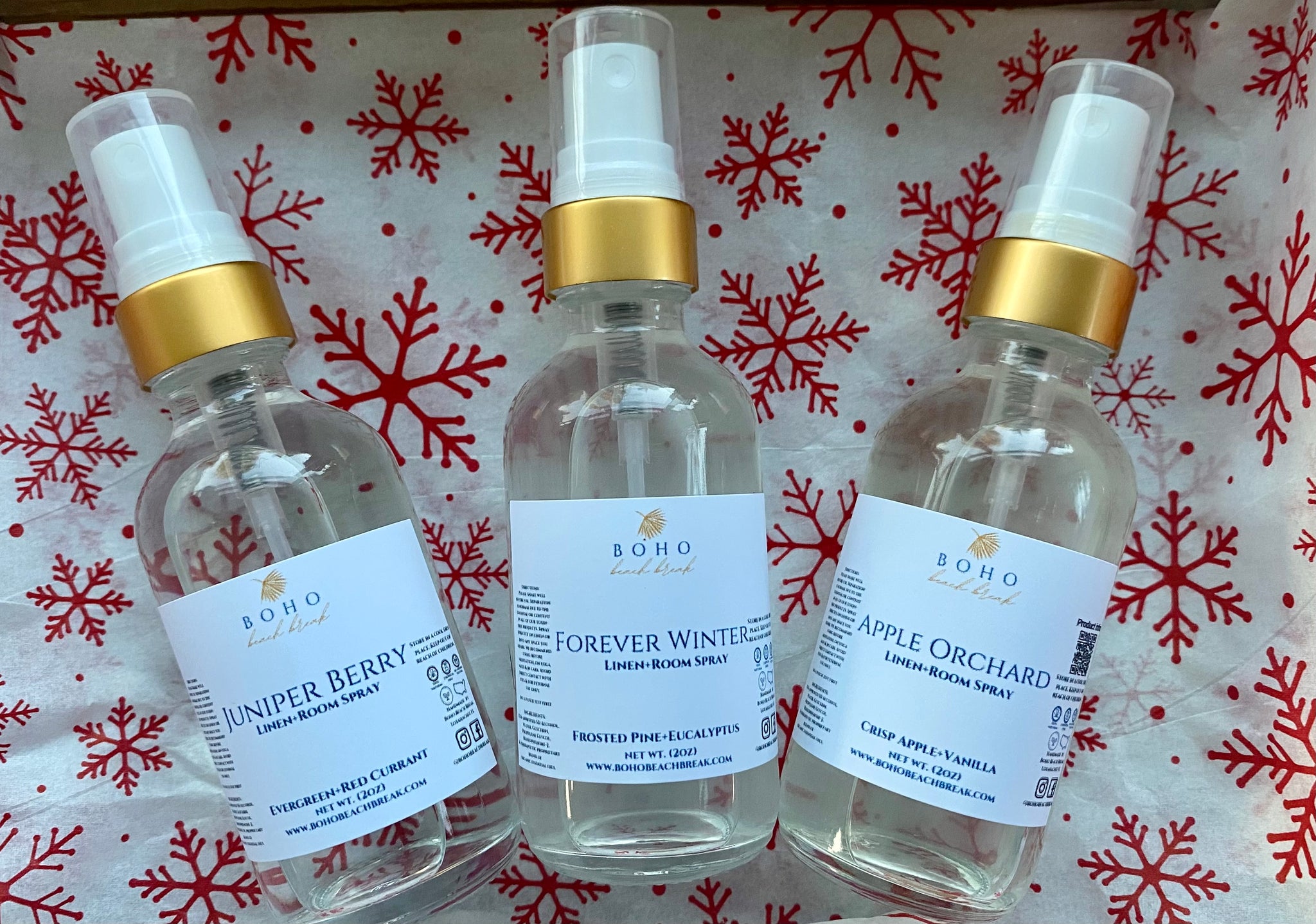 Elevate your mood and freshen up your living space with our handmade all-natural Juniper Berry Linen + Room spray. This uplifting scent was inspired by our love for Christmas and all the joy it brings. Spray before company comes over to give a fresh holiday scent.